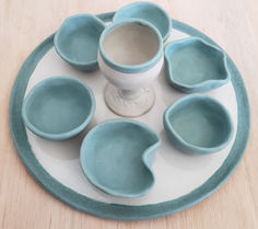 All pieces will be finished by the instructor, including bisque firing, application of clear glaze, and high firing. The completed Seder plate set will be food safe.
